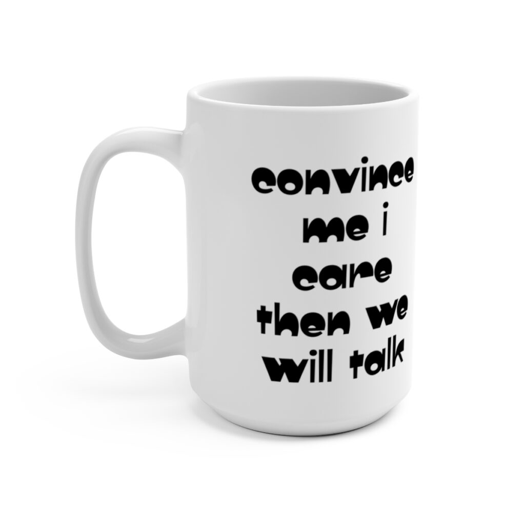 convince me i care then we will talk – white ceramic mugs $21.25